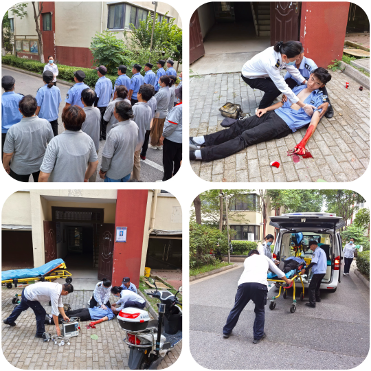 演練前,公司邀請社區(qū)衛(wèi)生服務中心中醫(yī)康復科李朵護士長做了高溫中暑專題培訓,系統(tǒng)講解了中暑原因、分類、癥狀表現(xiàn),預防措施和救治規(guī)范,現(xiàn)場模擬了安保人員在巡邏過程中突感身體不適,出現(xiàn)頭暈嘔吐等中暑癥狀。巡邏的安保人員迅速反應,第一時間向現(xiàn)場班長報告,立即將中暑人員轉移至陰涼、通風處并對中暑人員進行冰敷降溫處理。整個演練過程信息上報、現(xiàn)場處置、后勤保障等環(huán)節(jié)緊密銜接,各崗位人員分工明確,行動迅速。