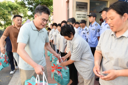 入伏以來,宿遷持續(xù)高溫晴熱天氣,給堅守一線崗位的勞動者帶來不小挑戰(zhàn)。為有效落實防暑降溫措施,切實保障一線員工身體健康與作業(yè)安全,7月24日,建發(fā)公司組織開展了一線員工高溫慰問活動。公司副總經(jīng)理倪松、相關(guān)部門負責人參加了慰問。