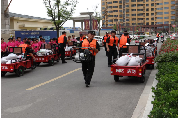 雨季即將來(lái)臨,為增強(qiáng)應(yīng)對(duì)汛情的反應(yīng)和處置能力,提升公司物業(yè)項(xiàng)目防汛應(yīng)急搶險(xiǎn)水平,6月7日下午,公司物業(yè)管理部在園區(qū)公舍西楚金地商城舉行了防汛搶險(xiǎn)應(yīng)急演練。演練共出動(dòng)30名保安、10名消防官兵,8臺(tái)應(yīng)急搶險(xiǎn)電動(dòng)三輪車(chē),2臺(tái)消防車(chē),準(zhǔn)備了沙袋120袋。
