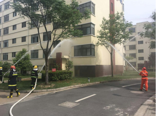 區(qū)域聯(lián)防聯(lián)勤在園區(qū)公舍舉行消防實戰(zhàn)演練