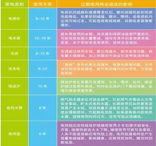 我們平時(shí)在購買食物時(shí)都會(huì)特別注意查看食品的保質(zhì)期,但是您知道家用電器也有“保質(zhì)期”嗎?家用電器都有安全使用年限,在使用時(shí)一定要留意。